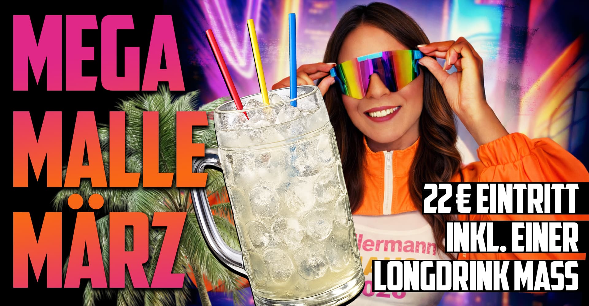 👉 22 € Eintritt inkl. einer Longdrink-Maß – wie im Megapark*